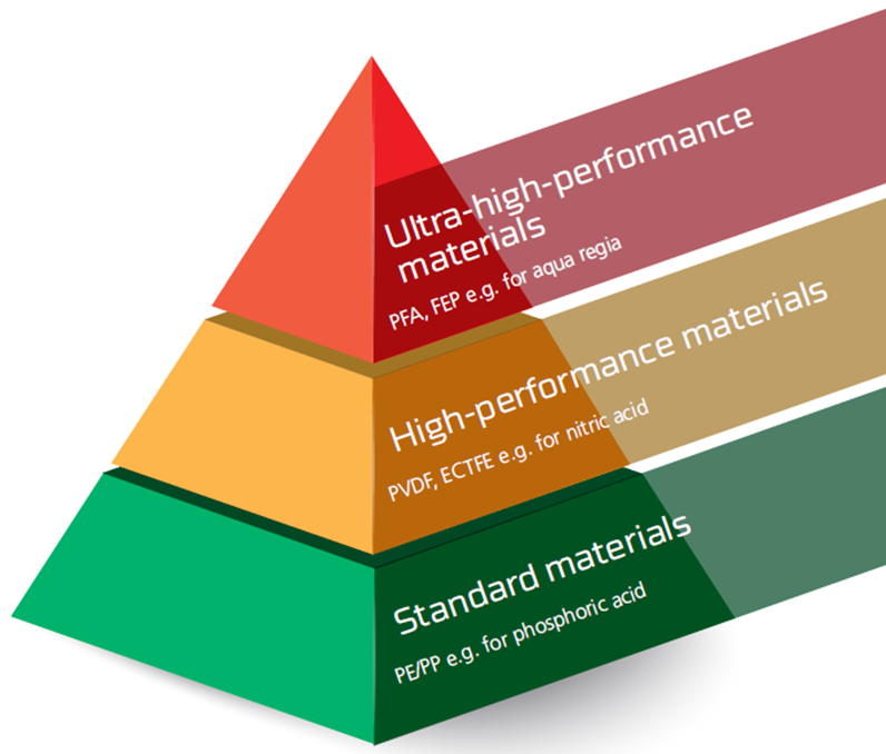 Các vật liệu nhựa gốc Flo (Fluoropolymers) như (PVDF, ECTFE, FEP và PFA)